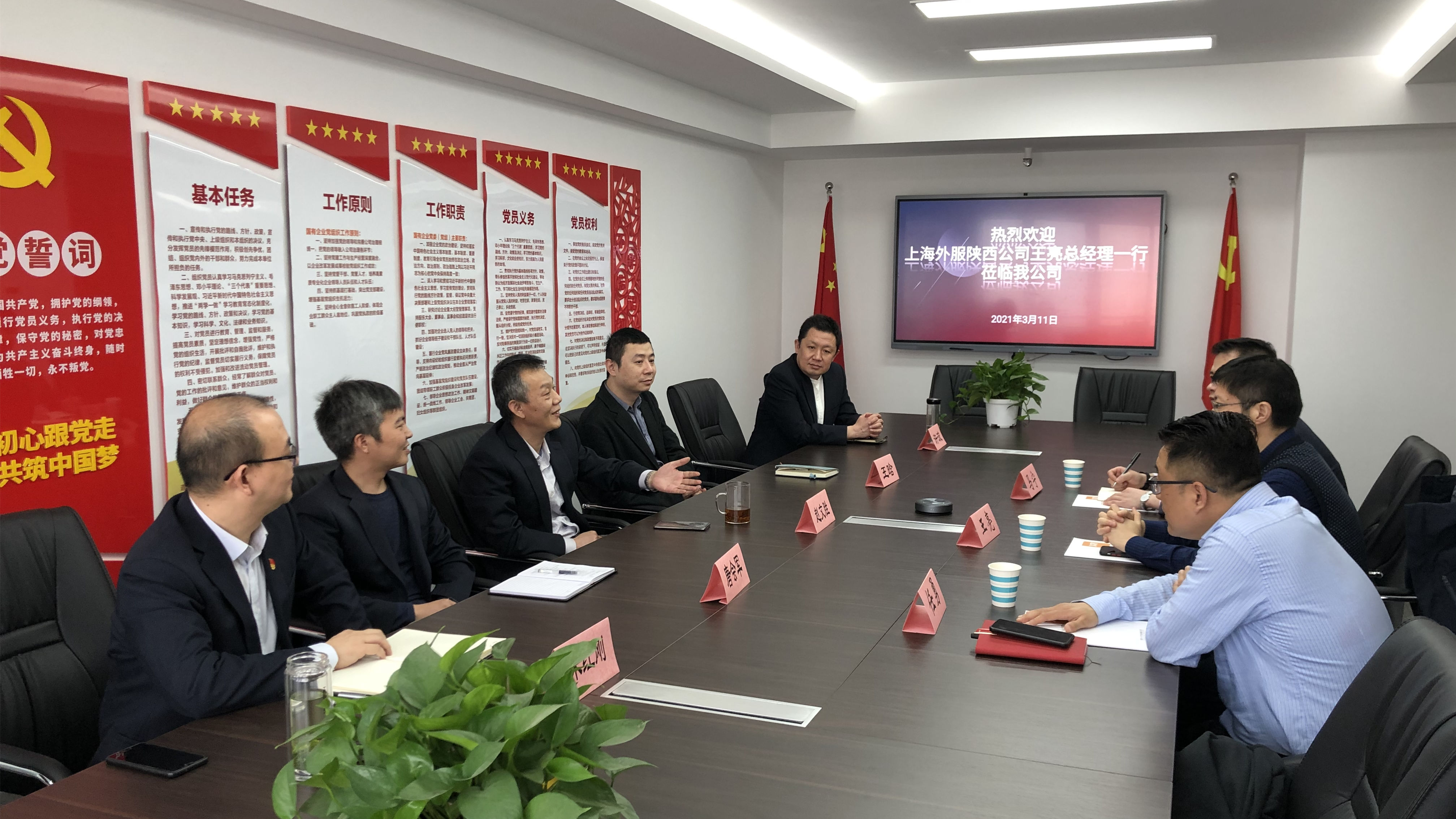 3月11日下午,上海外服集團有限公司陜西公司總經理王亮一行三人赴我公司考察交流。公司黨支部書記、董事長、總經理趙文勝、副總經理王晗、唐會軍,總經理助理許波、朱紅剛參加此次會談。